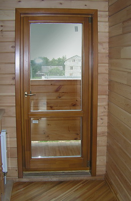Это самый распространенный вид дверей, используемый в основном для выхода на балкон или лоджию. Но за счет контурного запирания фурнитуры и установки противовзломного запора можно использовать эту дверь в качестве входной или в качестве люка между первым и вторым этажами. При этом можно заменить обычный стеклопакет на стеклопакет с ударопрочным стеклом (триплекс). Также можно заменить стекло наборным брусом.